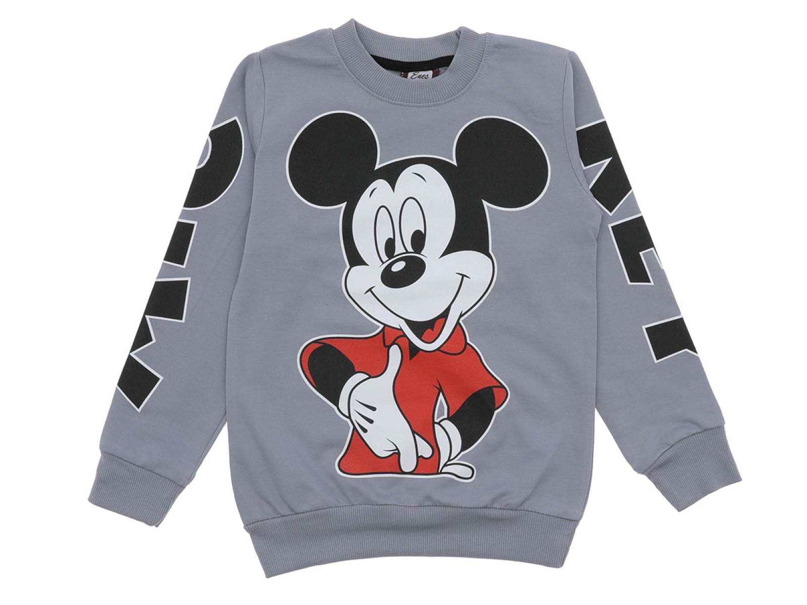 Chłopięca bluza w kolorze szarym. Bluza wkładana przez głowę. Jest to klasyczny krój z okrągłym dekoltem. Oryginalności dodaje jej duży nadruk Mikiego z przodu. Bluza uszyta jest z cienkiej, wygodnej dresówki, posiada ściągacz na dole i przy rękawkach. Każdy chłopiec będzie z niej zadowolony!