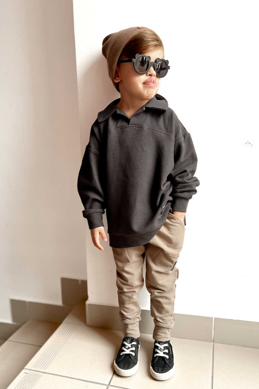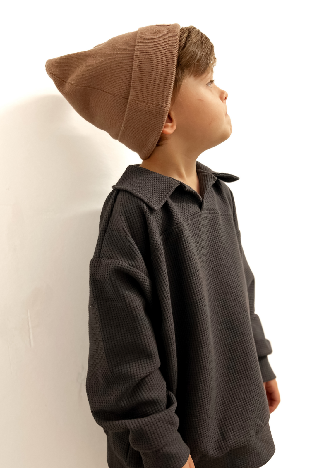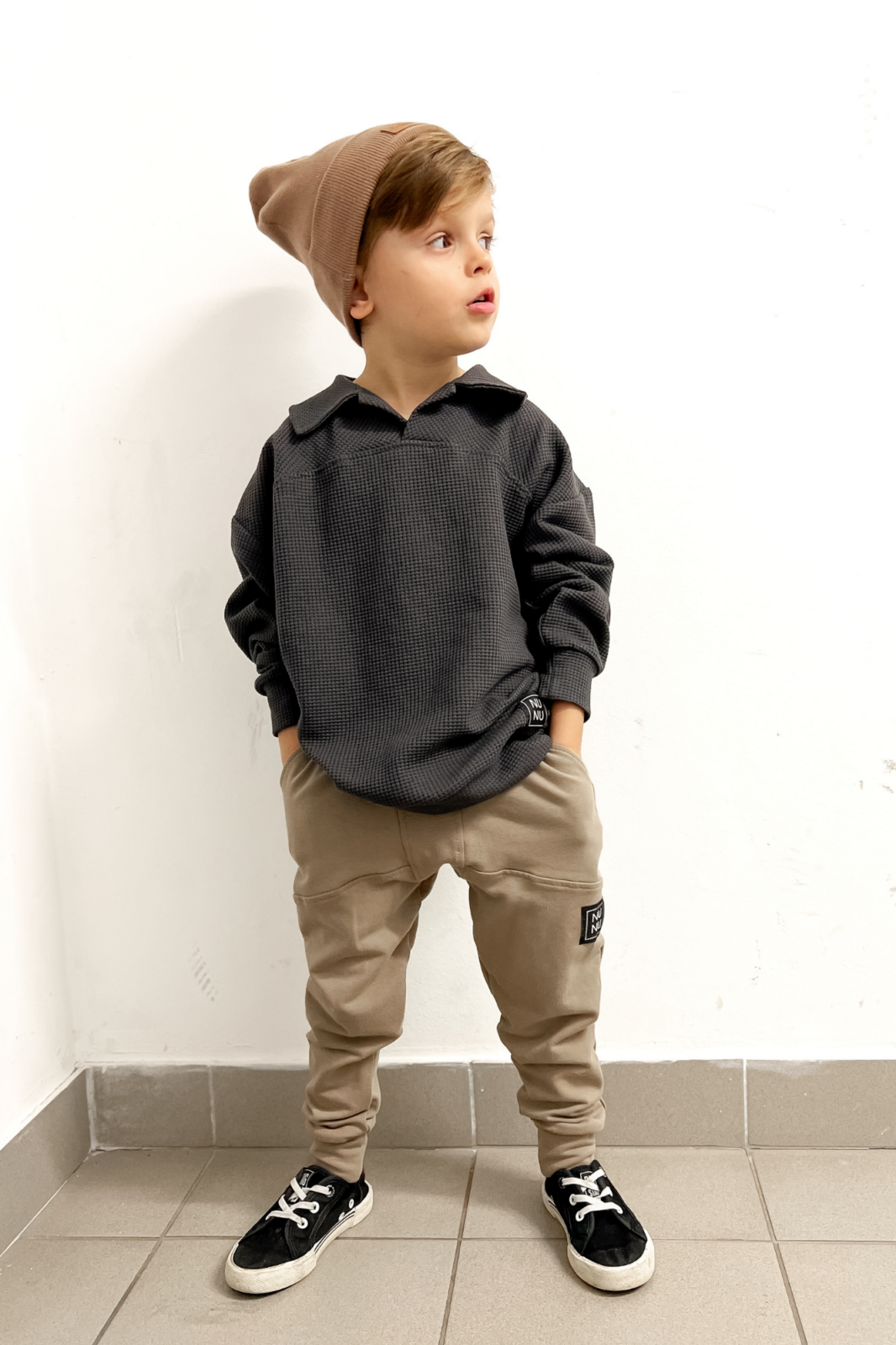 Sweter z dzianiny wafelkowej na czadowe stylówki i wyróżnienie z tłumu od polskiego producenta NUNU. Jest to model o luźnym kroju, typ OVER, wkładany przez głowę. Oryginalności dodaje mu logowanie firmowym znakiem na dole. Idealna propozycja dla tych, co lubią zarówno wygodę jak i niebanalny styl. Kolekcje producenta NUNU szyte są w krótkich seriach, co zapewnia im wyjątkowość i niepowtarzalność. Najwyższa jakość Premium!