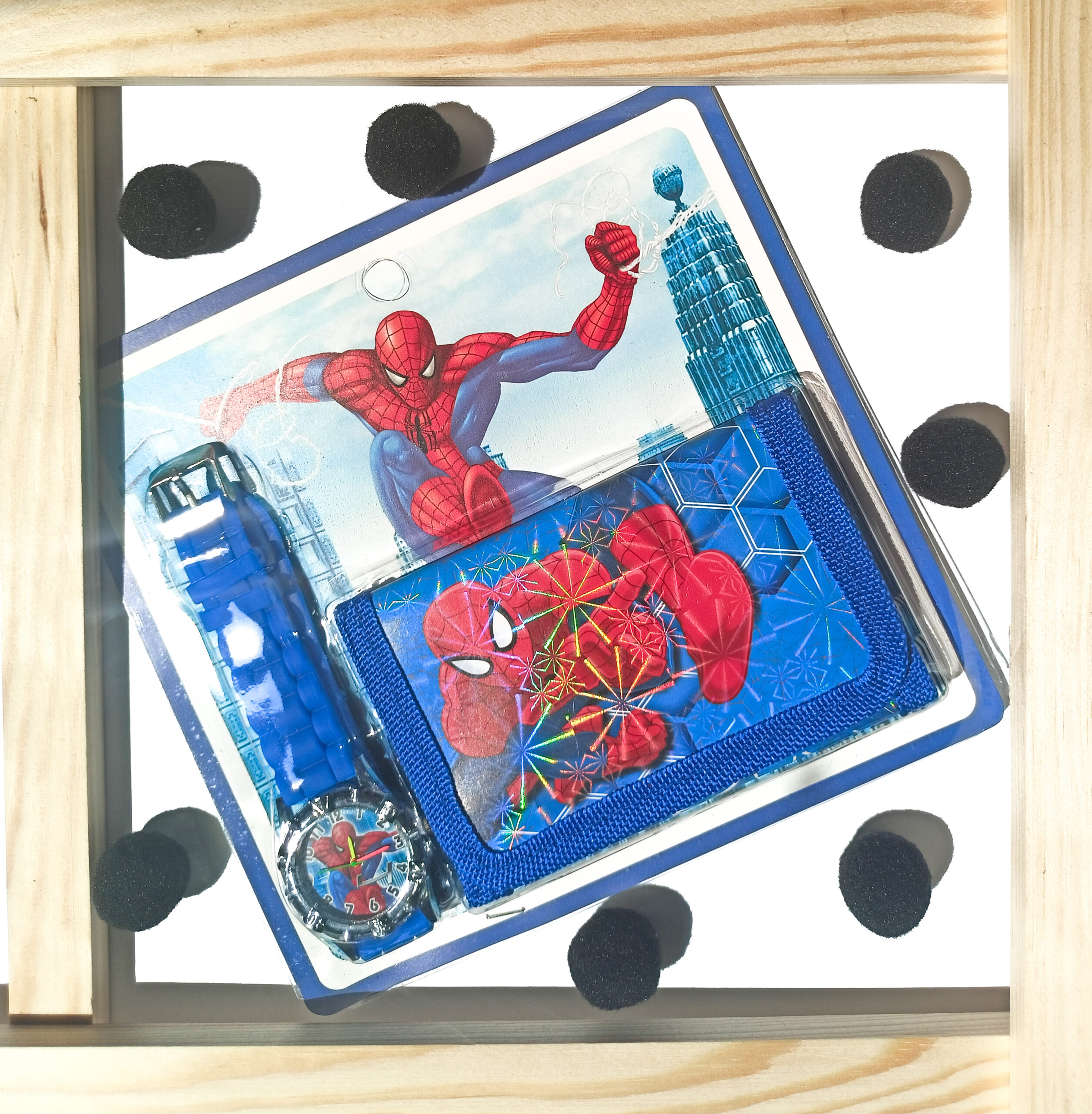 W zestawie z zegarkiem również portfel z motywem Spider-Mana. Jest to cienki, jednak pojemny portfel zamykany na szeroki rzep, oraz suwak w kieszeni na banknoty i bilon. W portfelu są również 2 oddzielne kieszenie na karty (np bilet miesięczny) oraz jedna transparentna kieszeń na legitymację.
