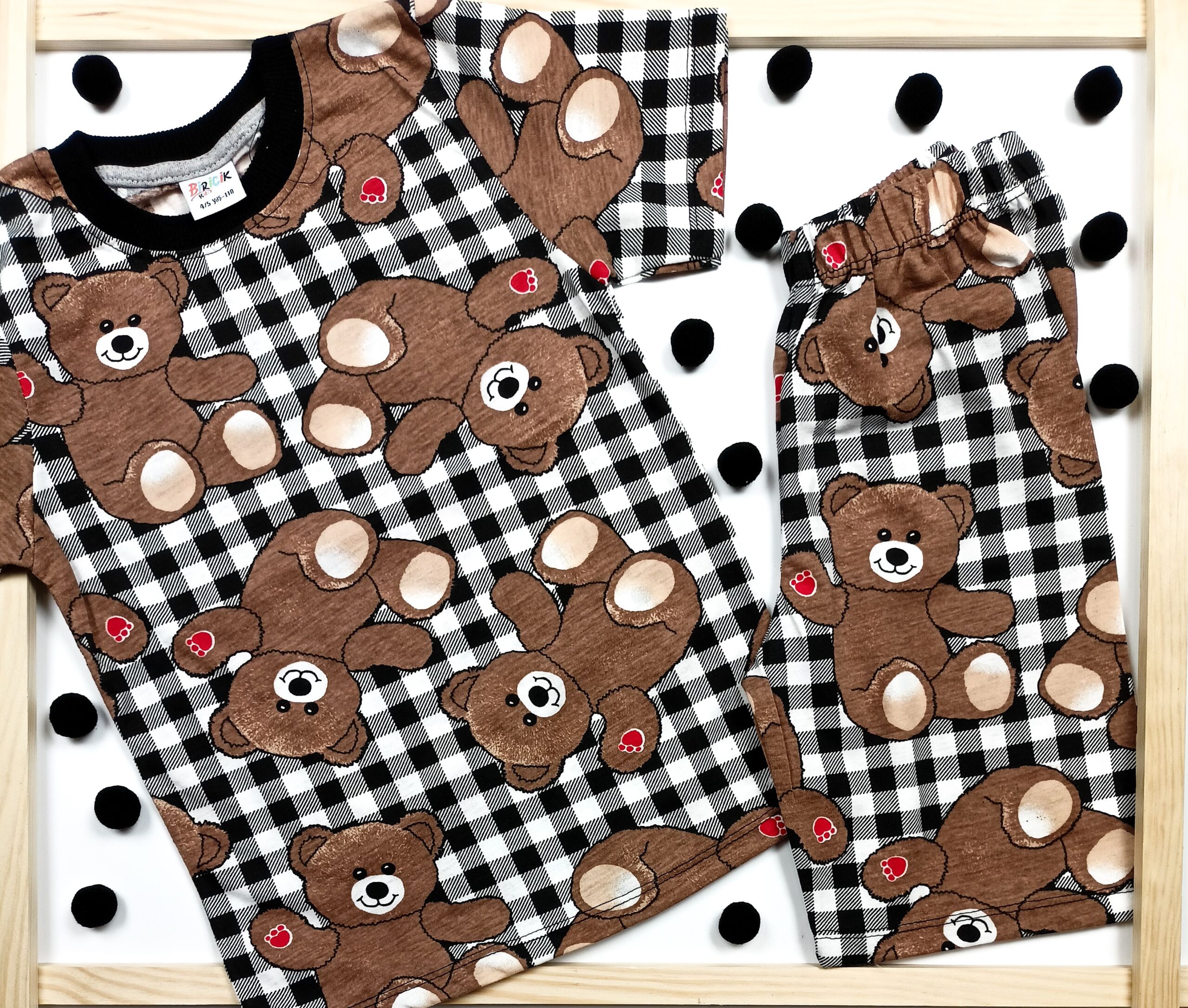Piżamka Miś Czarna Krata Biricik Kids
