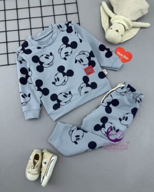 Chłopięcy komplet dla fanów LABUBU. W zestawie niebieska bluza z nadrukiem LABUBU. Bluza ma klasyczny krój i wkładana jest przez głowę. Posiada ściągacz na dole i przy rękawkach. Czarne spodnie  posiadają nadruk LABUBU idealnie komponujący się z bluzą. Spodnie mają ściągacz przy nogawkach, a pas w gumkę sprawia, że spodnie utrzymują się na swoim miejscu. To model uszyty z przyjemnej, miękkiej dzianiny dresowej, nie krępującej ruchów chłopca.