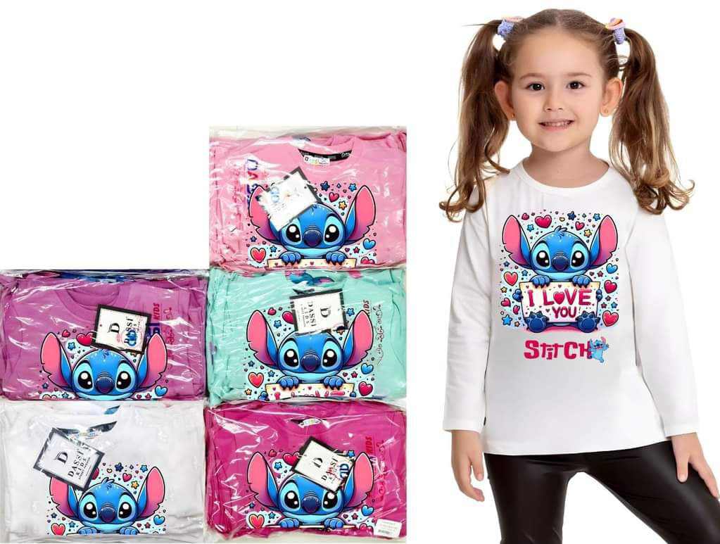 Piękna bluzeczka dla fanek bajki Stitch w pięciu wariantach kolorystycznych: fioletowy, malinowy, różowy, śmietankowy i zielony. Jest to klasyczny krój z okrągłym dekoltem. Uroku bluzce nadaje nadruk z bohaterem bajki. To model uszyty z przyjemnej, miękkiej bawełny, nie krępującej ruchów dziecka.
