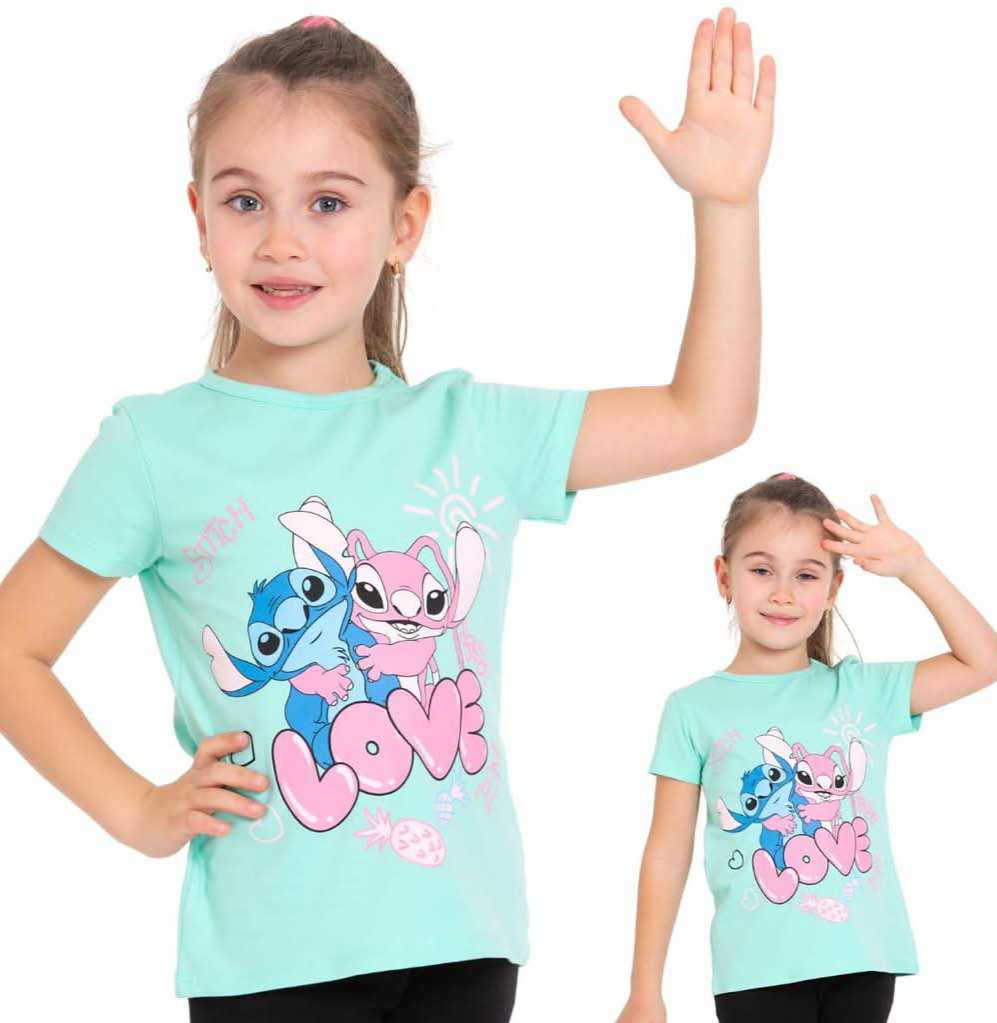 Piękna bluzeczka z krótkim rękawem dla fanek bajki Stitch. Jest to klasyczny krój z okrągłym dekoltem. Uroku bluzce nadaje nadruk bohaterów bajki. To model uszyty z przyjemnej, miękkiej bawełny, nie krępującej ruchów dziecka.