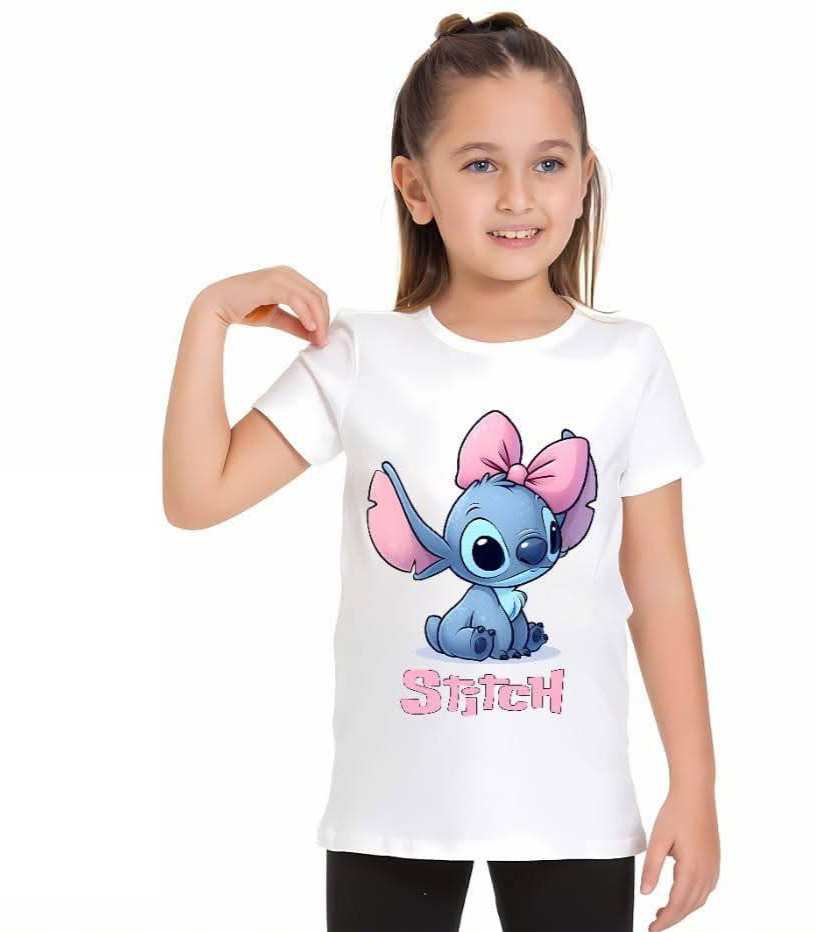 Piękna śmietankowa bluzeczka z krótkim rękawem dla fanek bajki Stitch. Jest to klasyczny krój z okrągłym dekoltem. Uroku bluzce nadaje nadruk bohaterki bajki. To model uszyty z przyjemnej, miękkiej bawełny, nie krępującej ruchów dziecka.