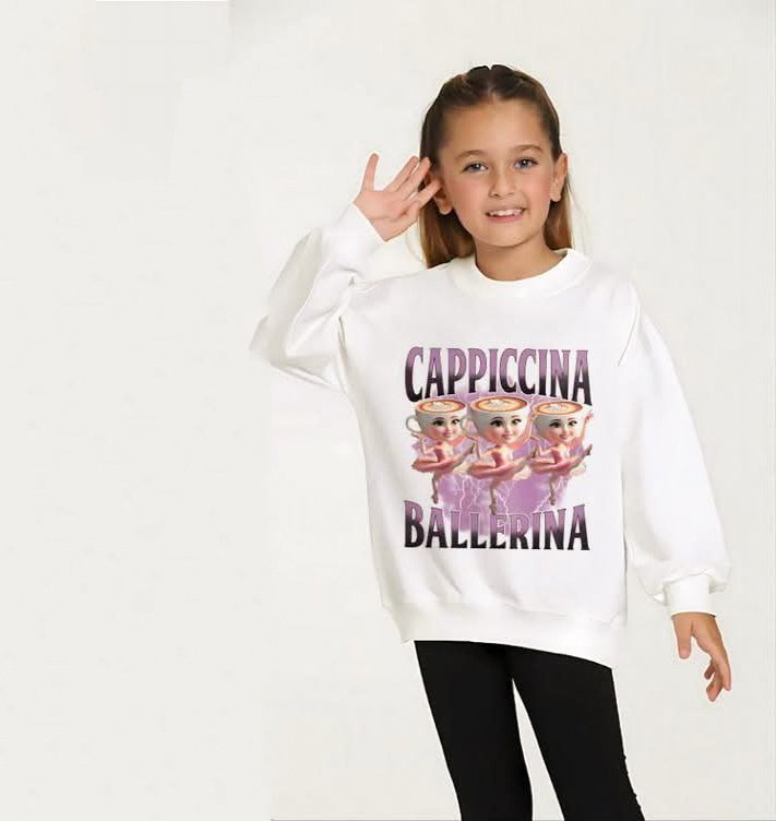 Dziewczęca bluza w kolorze śmietankowym/kremowym. Bluza wkładana przez głowę. Jest to klasyczny krój z okrągłym dekoltem. Oryginalności dodają jej Ballerina Cappuccina. Bluza uszyta jest z cienkiej, wygodnej  dresówki, posiada ściągacz na dole i przy rękawkach. Każda dziewczynka będzie z niej zadowolona