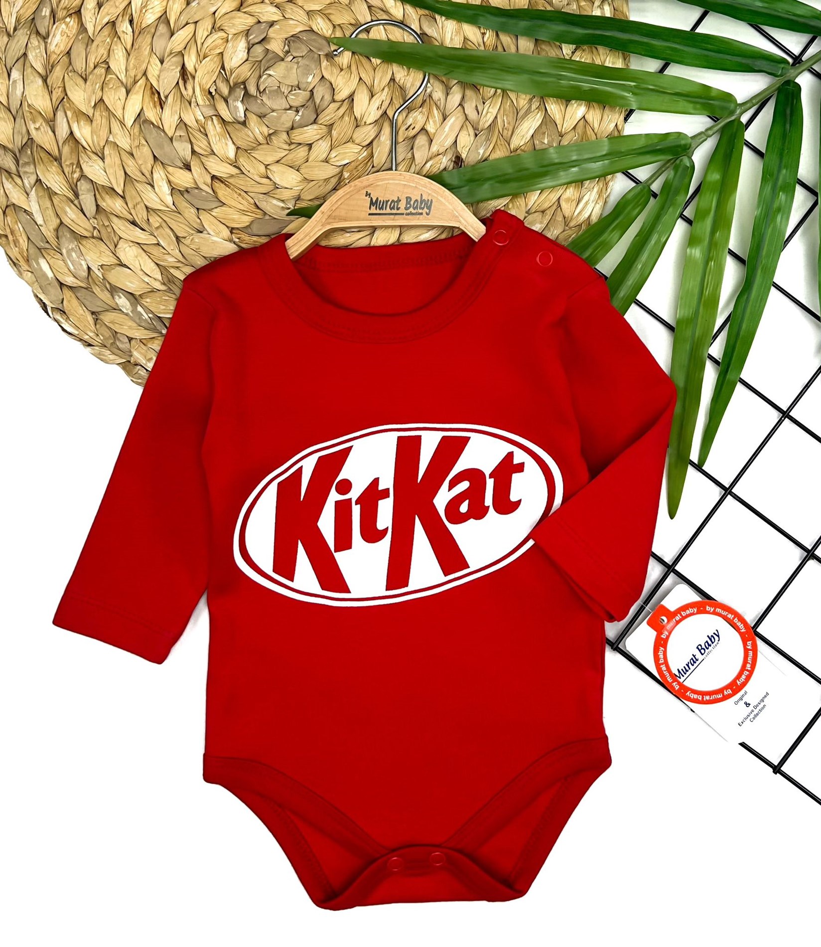 Urocze body niemowlęce z długim rękawem w kolorze czerwonym. Body posiadają zapinanie na napki przy szyjce i w kroku. Oryginalności dodaje im nadruk z napisem KitKat. Body zapewnią dziecku wygodę, komfort i mogą być z powodzeniem stosowane jako baza do innych stylizacji. Nie może ich zabraknąć w garderobie maluszka! To model uszyty z przyjemnej, miękkiej bawełny, nie krępującej ruchów dziecka.