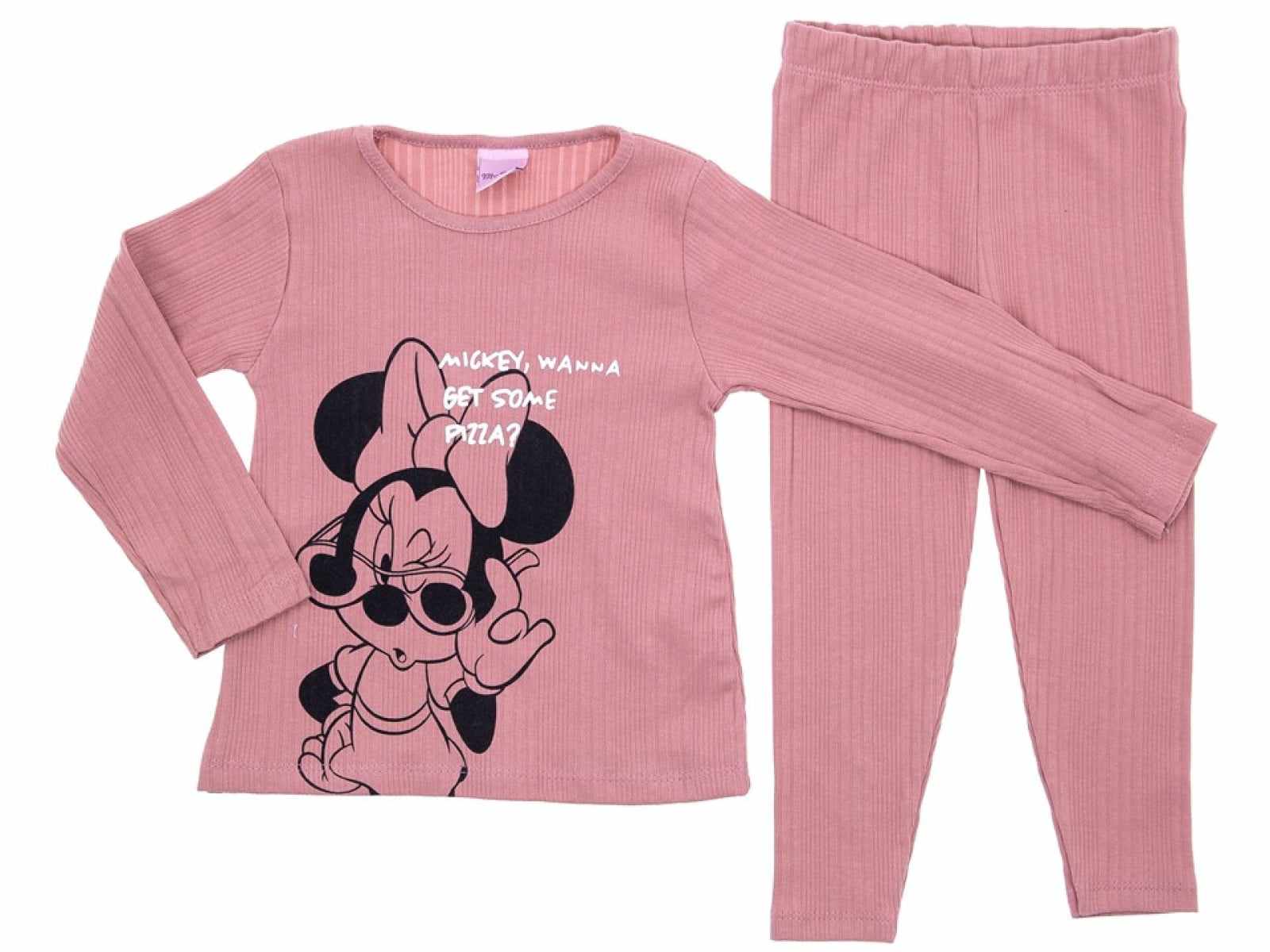Efektowny dziewczęcy komplet z materiału typu prążek dla fanek Myszki Minnie. Bluzka z długim rękawem ma klasyczny krój z okrągłym dekoltem. Oryginalności dodaje jej nadruk Myszki Minnie. Legginsy a'la prążek idealnie komponują się z bluzką i posiadają praktyczną gumkę w pasie. To model uszyty z przyjemnej, miękkiej bawełny, nie krępującej ruchów dziecka.