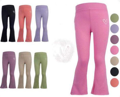 Dziewczęce spodnie typu dzwony w dwóch wariantach kolorystycznych: czarny i różowy. Jest to model z szerokimi nogawkami. Spodnie świetnie dopasowują się do sylwetki i pasują do każdej stylizacji. Uszyte z materiału typu prążek. Elastyczny materiał zapewnia wygodę i nie krępuje ruchów. Dzwony posiadają gumę w pasie, dzięki której trzymają się na swoim miejscu. Uroku spodniom dodaje wyszyte serduszko na jednej nogawce. Ten model przypadnie do gustu każdej dziewczynce.