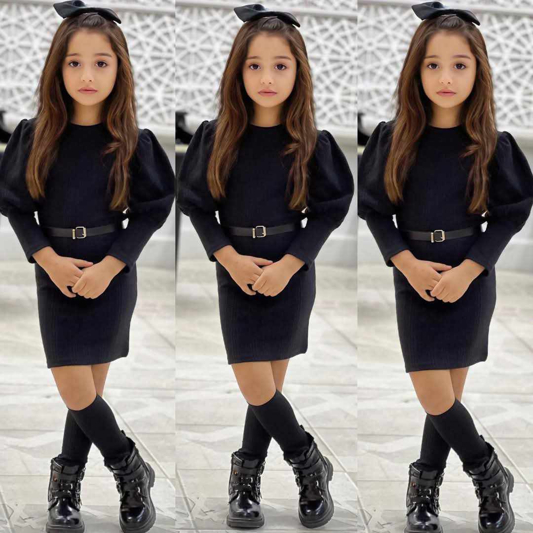 Piękna sukienka/tunika z długim rękawem w kolorze czarnym. Sukienka dopasowana, uszyta z materiału typu prążek. Bufki przy ramionach sprawiają, że sukienka nabiera wyjątkowego dziewczęcego charakteru. Sukienka nie krępuje ruchów i zapewnia wygodę noszenia dla każdej małej księżniczki. To model uszyty z przyjemnego materiału typu prążek. W zestawie pasek i ocieplacze na nogi.