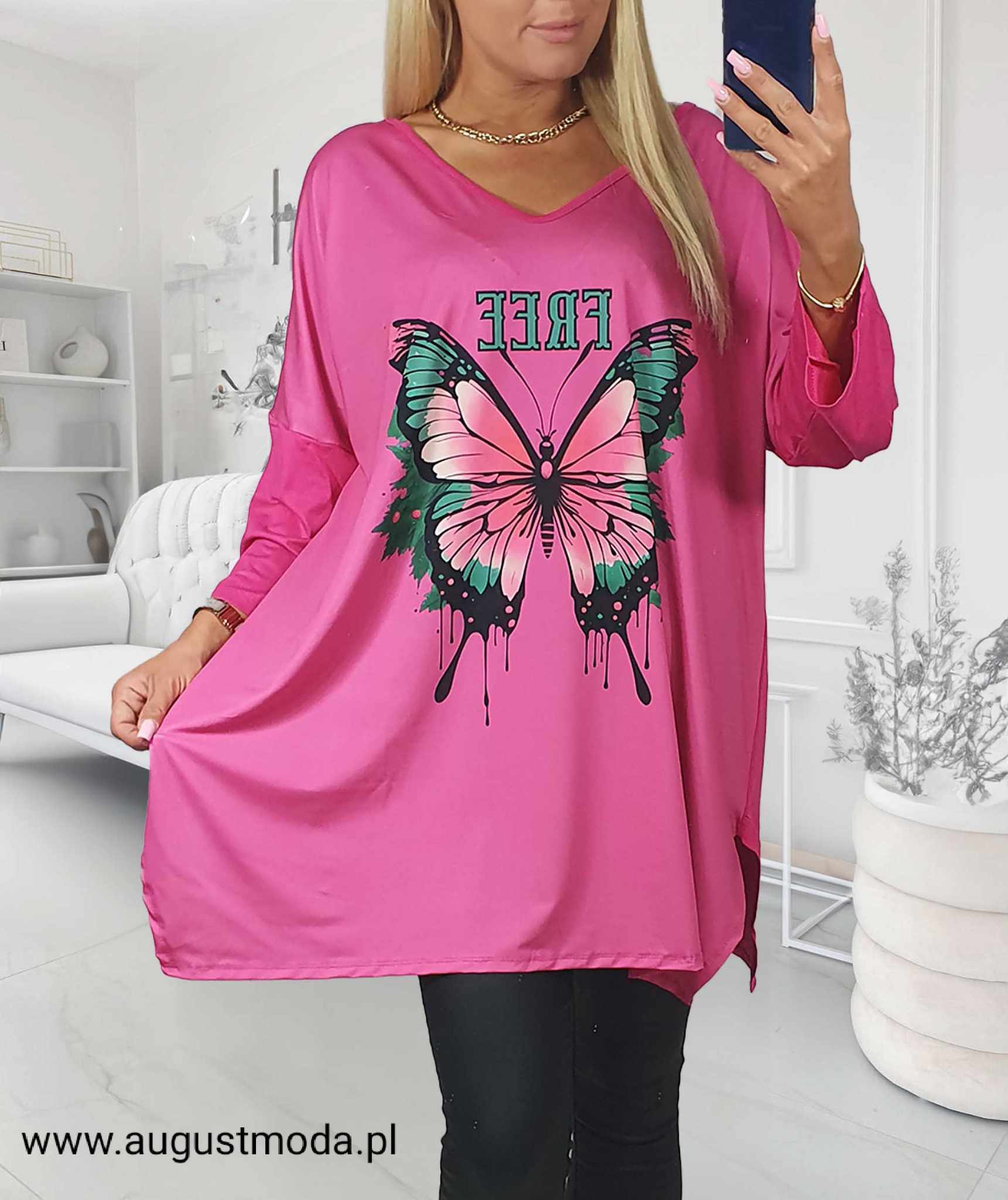 Tunika Plus Size Różowa Motyl FREE